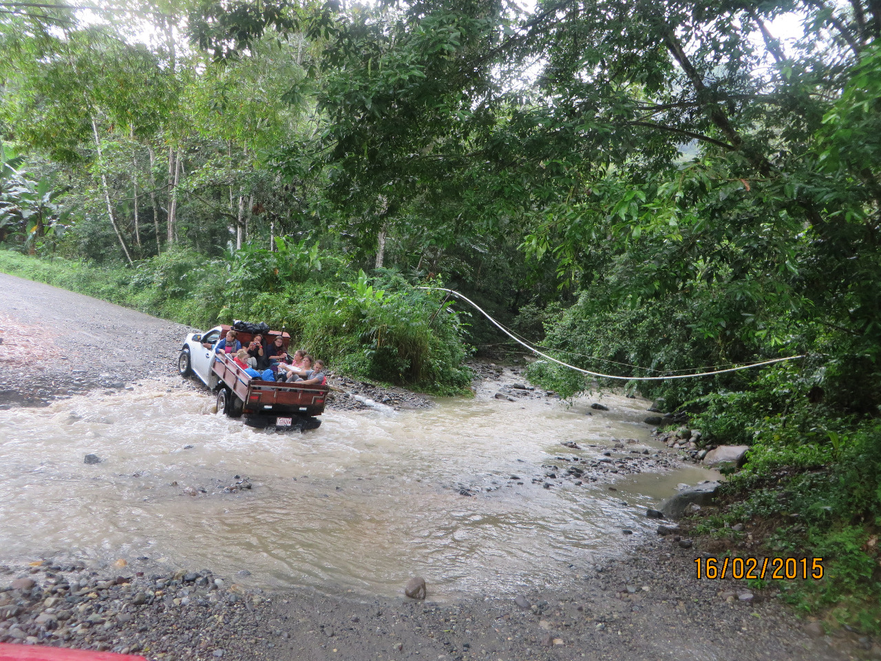 Auf der Fahrt zur Öko- Lodge war der eigentliche Plan eine Chiquita- Bananenplantage anzuschauen, doch wie erwartet wurden wir nicht auf das Gelände gelassen. In der Firma Chiquita herrschen sehr kritische Arbeitsbedingungen. Die meisten Mitarbeiter bekommen nur Dreimonatsverträge, die dann jeweils nach Ablauf wieder neu verhandelt werden müssen. Außerdem gibt es für die Mitarbeiter keine Möglichkeit eine Unfall bzw. Krankenversicherung abzuschließen.