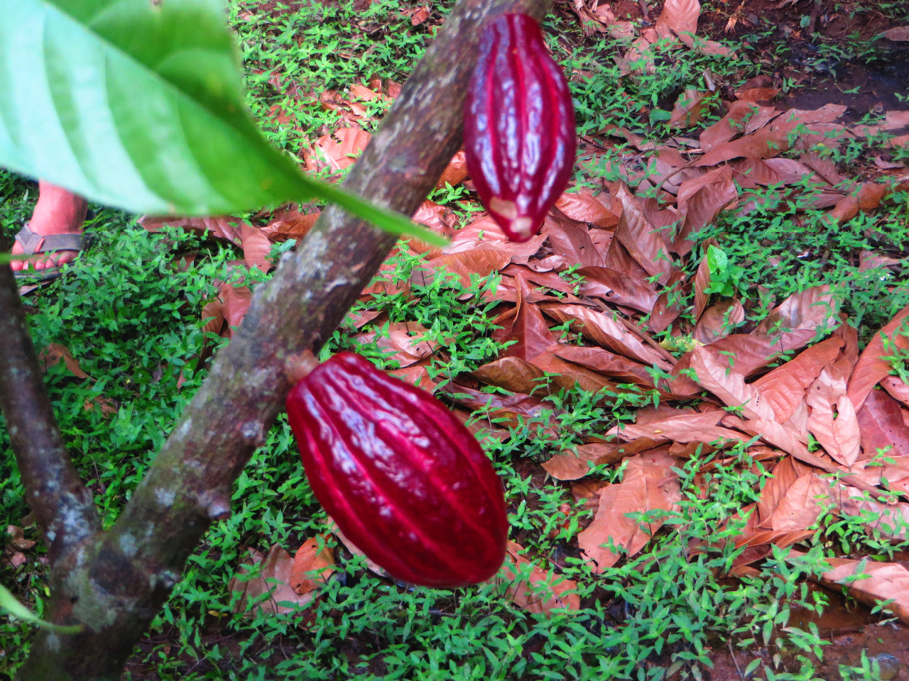 Links seht ihr unseren tollen Tagungsraum Rechts wachsen Kakaofrüchte am Baum